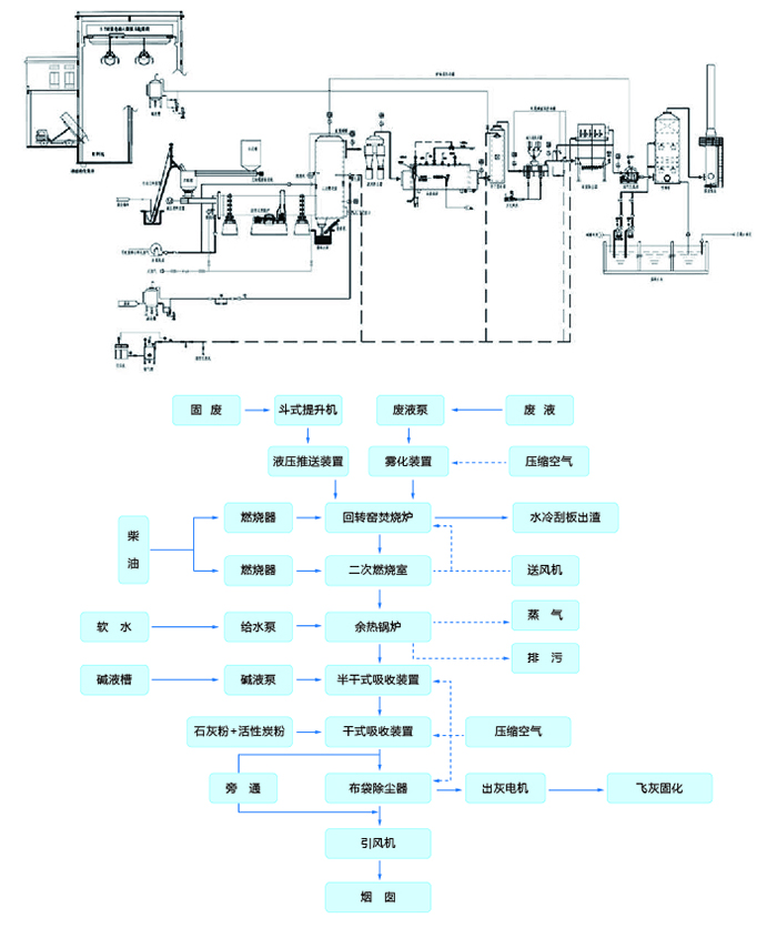 5、连续投料,各种高含水率废弃物及少量废水(气)等,可混合投入焚烧。