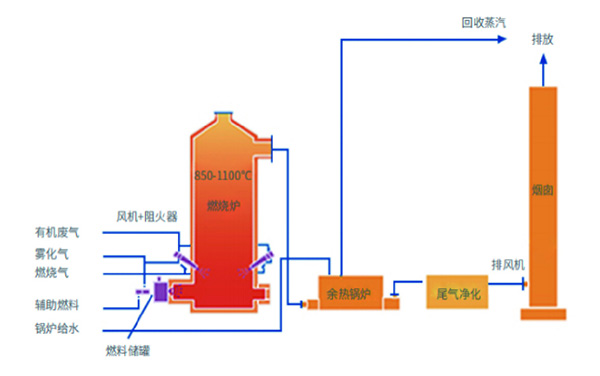 1、直接高温氧化燃烧,利用高温将废气中的有害成分分解成CO2和H2O,有机气体分解率高; 2、热能回收效率高,可回收热水、蒸汽、热风、导热油等; 3、配备低氮废气烧嘴,采用多级阻火防治回火; 4、焚烧效率高,无二次污染并能很好地控制二噁英的生成,保证环保排放达标。